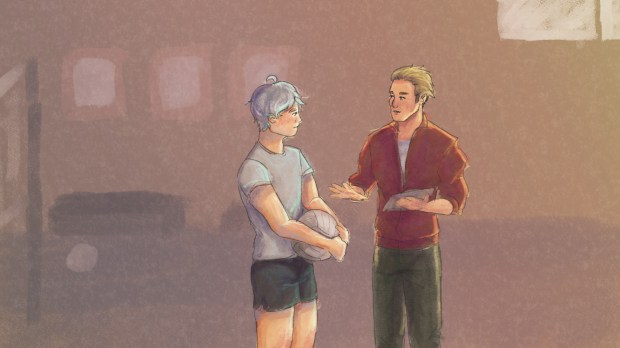 - Who is involved? (You don’t need to describe the characters’ appearances, since it’s fanart, unless they’re mermaids, have different hair, or something like that!) What are they doing?
