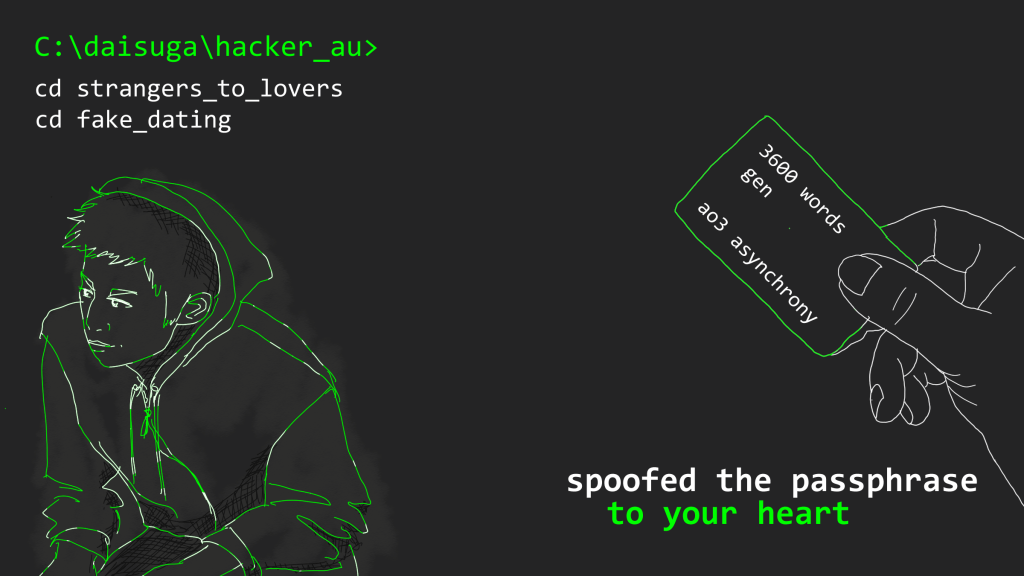 spoofed the passphrase to your heart involves a daichi who is so not a cop that he in fact gets arrested. a charming, subversive easy-read romance in a very specific au.