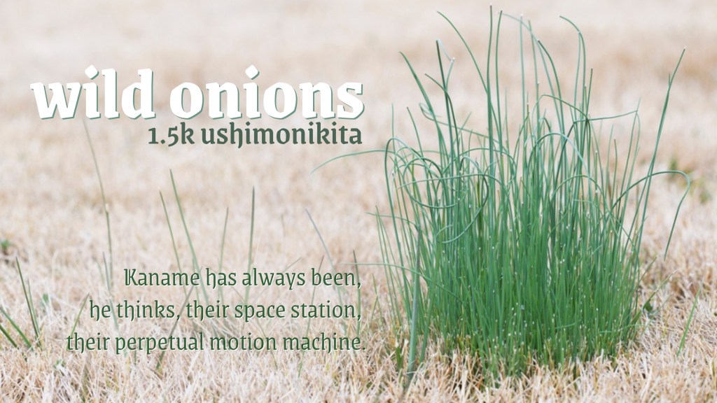 wild onions was the first fic in the ushijima/moniwa/kita tag. dreamy, moniwa-perspective, about how they all fit together.