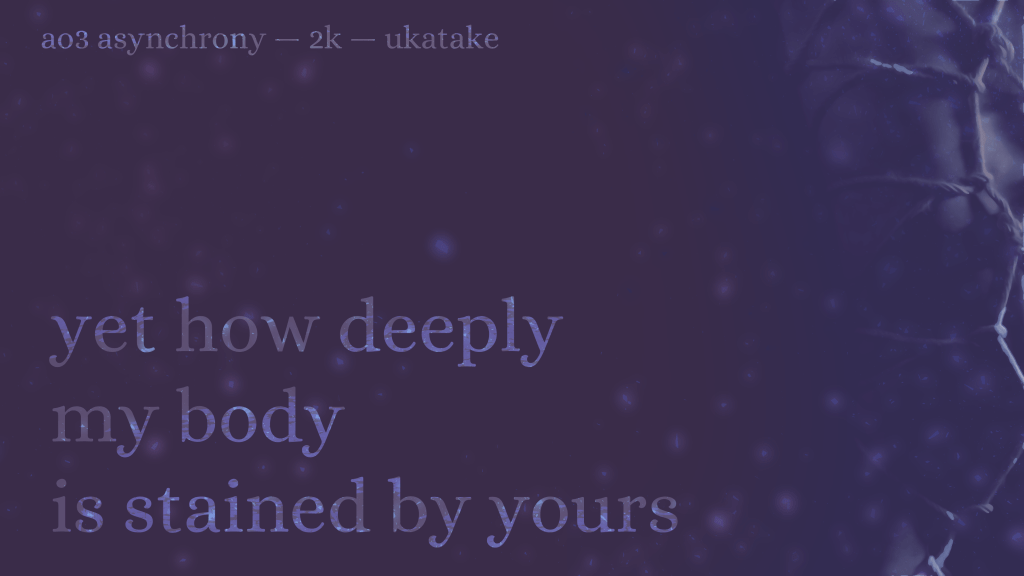 yet how deeply my body is stained by yours, as the title might suggest, is about poetry. it’s about takeda and how easily he disarms ukai; about ukai and how readily he trusts takeda, even with something like shibari. barely explicit, non-linear, two thousand words dense with absolute surrender.