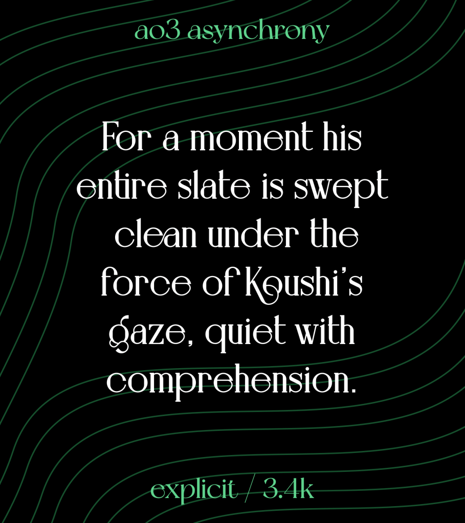 it’s also an ushikage fic with a gentle, nsfw sequel; ushijima and kageyama are both autistic, and kageyama’s exact trauma is never disclosed.